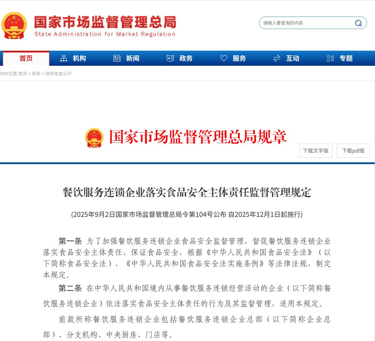 《餐饮办事连锁企业落实食物平安从体义务监视